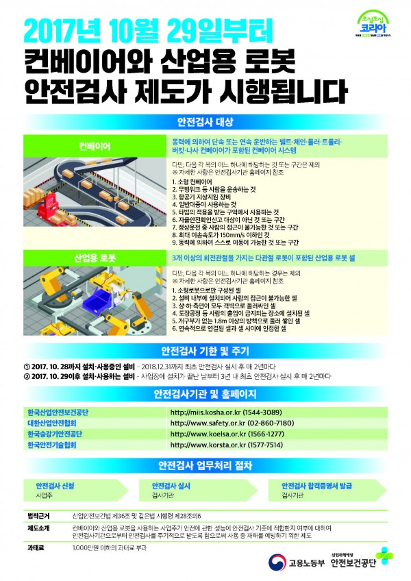 컨베이어 및 산업용 로봇 안전검사 제도 시행 페이지 정보 작성자 황승진 작성일17-11-20 17:22 조회9,793회 댓글0건 관련링크 이전글 다음글 목록 본문 . 댓글목록 등록된 댓글이 없습니다. 이전글 다음글 목록