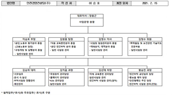 안전경영컨설팅 업무분장표 페이지 정보 작성자 안전경영컨설팅 작성일19-05-14 16:02 조회13,267회 댓글0건 관련링크 이전글 다음글 목록 본문 . 댓글목록 등록된 댓글이 없습니다. 이전글 다음글 목록