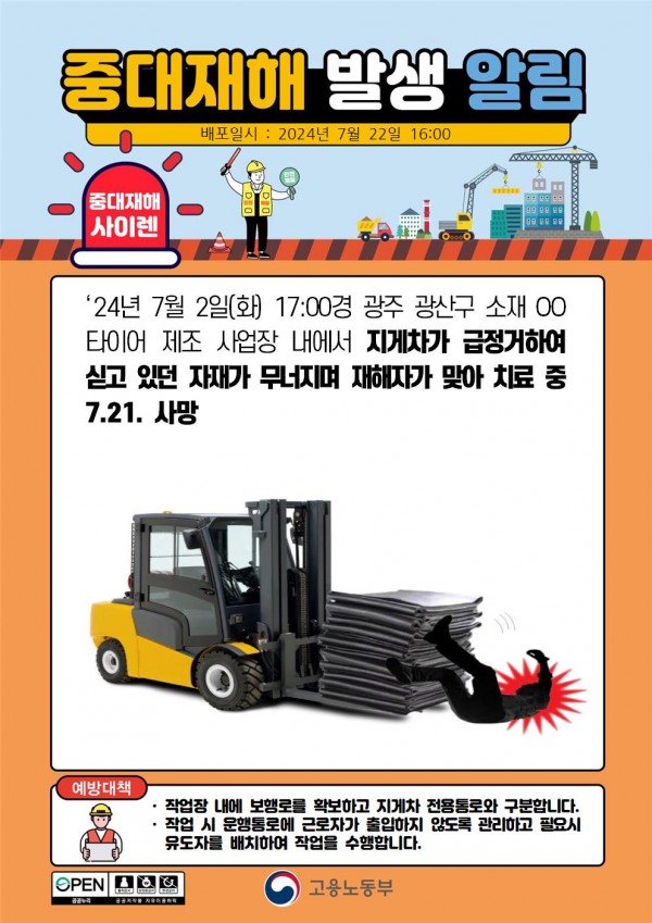 타이어 제조 사업장 지게차 싣고 있던 자재 무너짐에 의한 맞음 사망 페이지 정보 작성자 안전경영컨설팅 작성일24-07-23 12:08 조회3,563회 댓글0건 관련링크 이전글 다음글 목록 본문 . 댓글목록 등록된 댓글이 없습니다. 이전글 다음글 목록