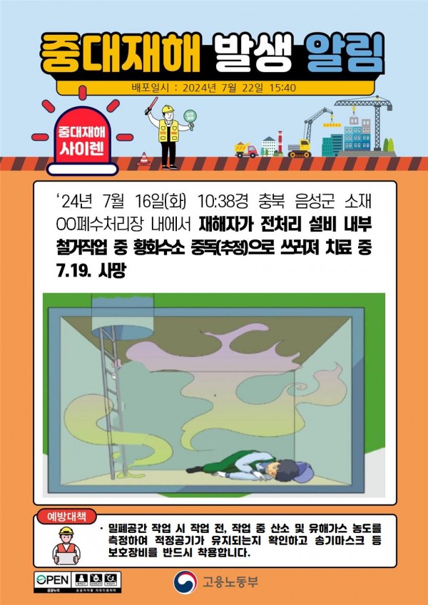 폐수처리장 내부 철거작업중 황화수소 중독으로 사망 페이지 정보 작성자 안전경영컨설팅 작성일24-07-23 12:09 조회3,810회 댓글0건 관련링크 이전글 다음글 목록 본문 . 댓글목록 등록된 댓글이 없습니다. 이전글 다음글 목록