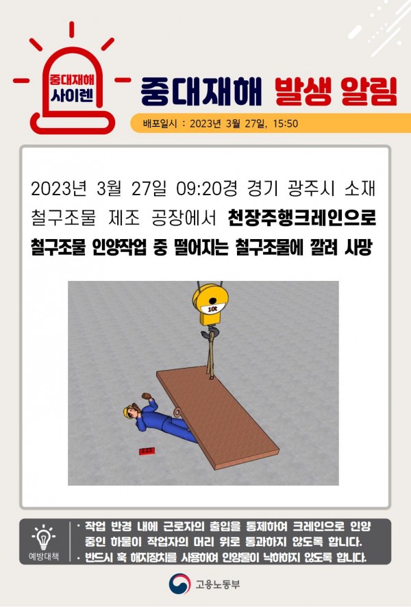 <중대재해> 철구조물 운반작업 중 구조물 떨어짐에 의한 깔림 재해 페이지 정보 작성자 안전경영컨설팅 작성일23-03-28 09:06 조회4,405회 댓글0건 관련링크 이전글 다음글 목록 본문 . 댓글목록 등록된 댓글이 없습니다. 이전글 다음글 목록