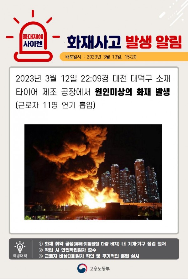 <중대재해> 타이어 제조 공장 화재 발생 페이지 정보 작성자 안전경영컨설팅 작성일23-03-28 09:07 조회4,509회 댓글0건 관련링크 이전글 다음글 목록 본문 . 댓글목록 등록된 댓글이 없습니다. 이전글 다음글 목록