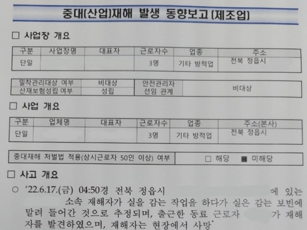 <중대재해> 실을 감는 보빈에 말려 끼임 페이지 정보 작성자 안전경영컨설팅 작성일22-07-14 09:12 조회5,581회 댓글0건 관련링크 이전글 다음글 목록 본문 . 댓글목록 등록된 댓글이 없습니다. 이전글 다음글 목록
