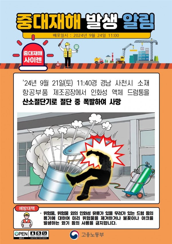 인화성 액체 드럼통 절단 중 폭발 사망 페이지 정보 작성자 안전경영컨설팅 작성일24-11-11 08:46 조회2,624회 댓글0건 관련링크 이전글 다음글 목록 본문 . 댓글목록 등록된 댓글이 없습니다. 이전글 다음글 목록