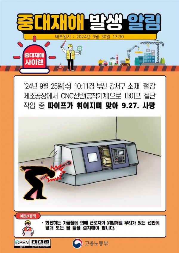 철강 제조공장에서 파이프 절단 작업 중 파이프가 휘어지며 맞아 사망 페이지 정보 작성자 안전경영컨설팅 작성일24-11-11 08:47 조회2,507회 댓글0건 관련링크 이전글 다음글 목록 본문 . 댓글목록 등록된 댓글이 없습니다. 이전글 다음글 목록