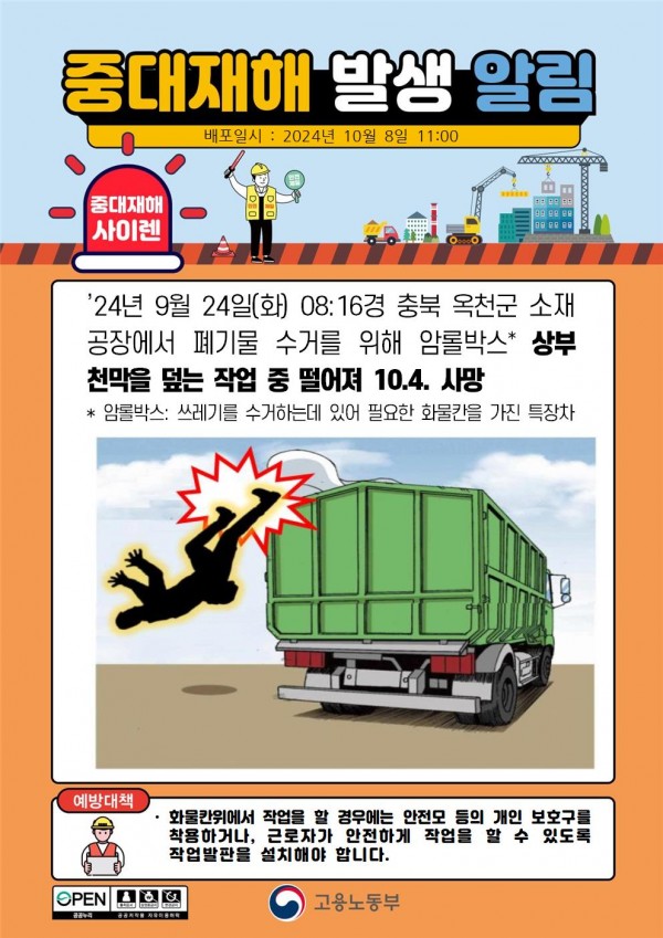 폐기물 수거 작업 중 상부 떨어짐에 의한 사망 페이지 정보 작성자 안전경영컨설팅 작성일24-11-11 08:47 조회2,998회 댓글0건 관련링크 이전글 다음글 목록 본문 . 댓글목록 등록된 댓글이 없습니다. 이전글 다음글 목록