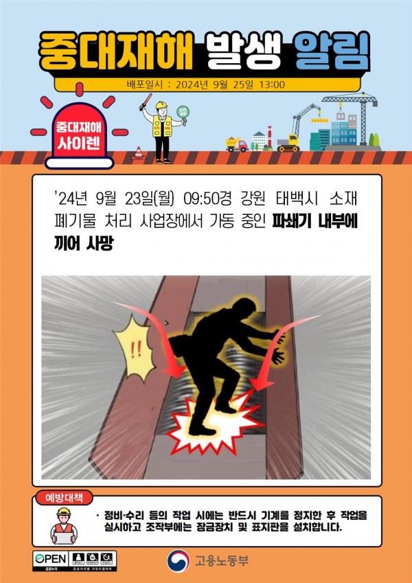 폐기물 처리 사업장에서 파쇄기 내부 끼임 재해 페이지 정보 작성자 안전경영컨설팅 작성일24-11-11 08:47 조회3,382회 댓글0건 관련링크 이전글 다음글 목록 본문 . 댓글목록 등록된 댓글이 없습니다. 이전글 다음글 목록
